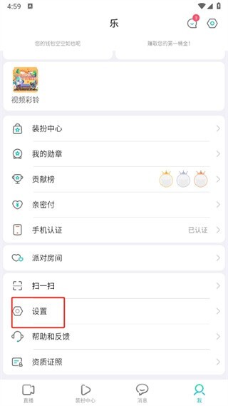 2、然后在我的页面中我们需要找到【设置】功能点击;