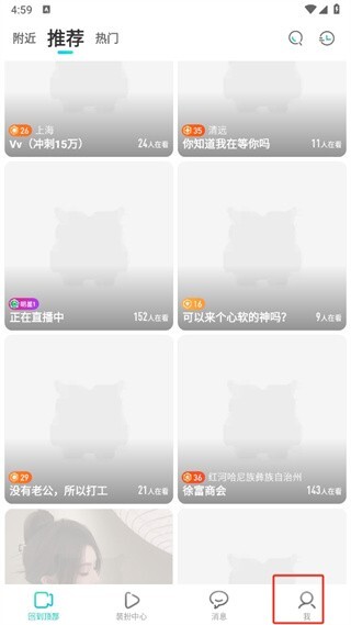 1、首先打开映客极速版,进入到首页中后我们点击右下角的【我】;