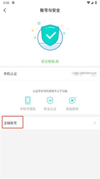 4、最后点击过后在账号与安全的页面中,我们点击【注销账号】即可;