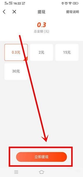 6、依旧在提现页面里,在页面正下方找到“立即提现”按钮,点击进入。