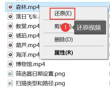 4.找到误删的视频后,右键单击文件,然后选择【还原】。