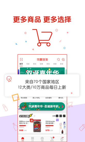 《丰趣海淘》是一家跨境电商购物平台。该平台通过网站、微信、移动客户端等多渠道为用户提供电商服务,助力中国用户便捷选购全球商品,致力于为用户带来优质的海外购物体验,确保用户购物无忧、使用安心。