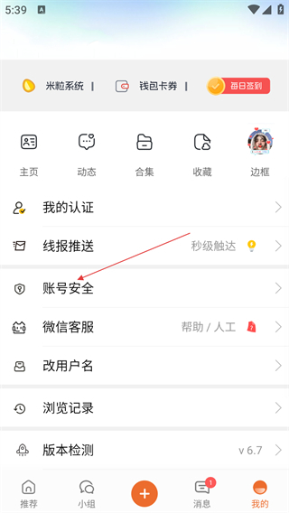 2、在个人中心页面,点击【账号安全】选项,进入账号安全页面。