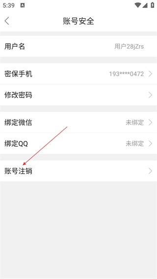 3、在账号安全页面,点击【账号注销】选项,进入注销须知页面。