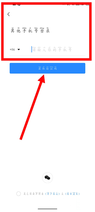 3、进入其他手机号登录页面,输入手机号后,点击获取验证码。