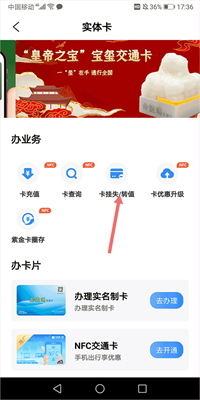 在弹出的新页面里找到【卡挂失】选项并点击,接着办理实体卡挂失手续,待挂失操作成功完成后,卡内的资金就会自动按原支付路径退回至用户的充值账户中。