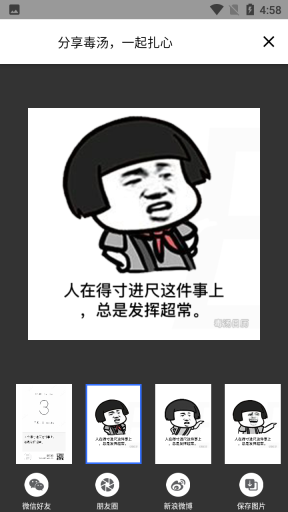 选择表情模板→写段毒鸡汤→生成表情包→发给朋友一起笑疯