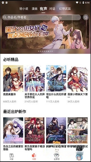 3、如果不想看小说,可以选择听小说,这里有众多精品小说可供收听。