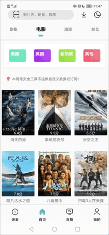 2、进入电影栏目,用户可以在此浏览到最新和最热门的影视资源;