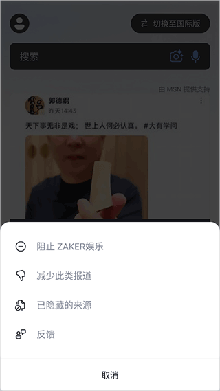 2、然后点击阻止或减少就可以减少推荐此类新闻的次数