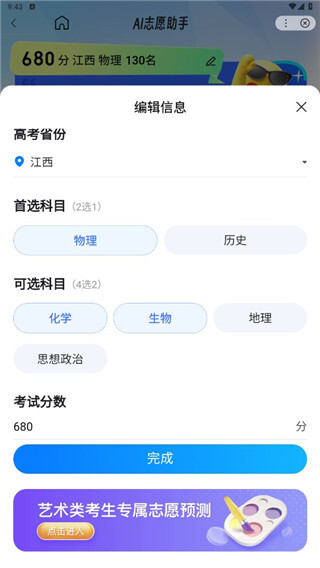 2、依次输入所在的的省份、批次、科目、分数等信息即可;