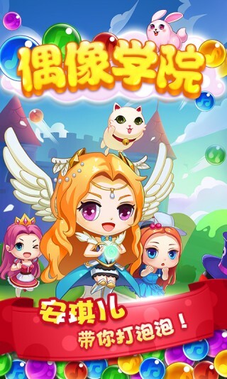 《偶像学院》是一款全新泡泡消除游戏,故事背景设定为讨厌的大魔王打破了安琪儿偶像学园的宁静,将明星学员们封印起来。玩家需要与安琪儿携手,解救被封印的学员,闯过大魔王布置的层层关卡,在闯关过程中不断学习、成长,最终成为闪耀的偶像巨星!