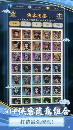 1、50+剑客,每个剑客都有自己独特的属性能力和攻击效果
