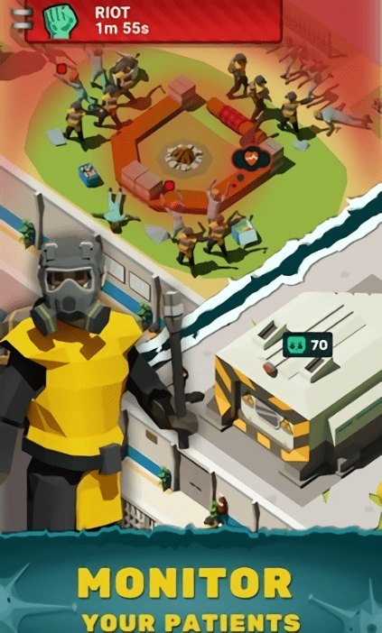 你可以招募人员,建造各类设施,治愈受感染的患者,同时尽力抵御爆发的侵袭。为医护人员配备高品质的设备,拓展娱乐区域,为指挥站添置必要装备。若想让你的诊所达到顶尖水平,就需要关注每一个细节,哪怕是通风系统的配置也不能忽视。