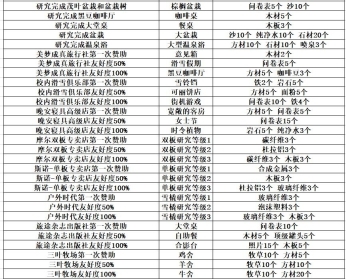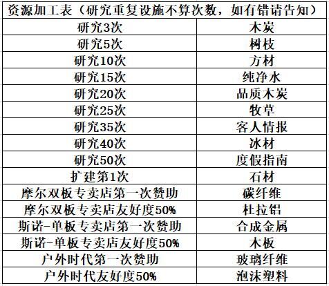随着新客人陆续到来,赞助商也一个个出现并提升至满友好度,可加工的资源与研究解锁的设施都会逐步开放,不必着急。(附研究及资源加工表)