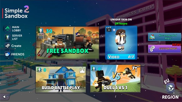 《简单沙盒2》2025最新版本正式上线!你可以和全球玩家联机互动,也能携手发挥创意,共同打造风格各异的专属世界。游戏内提供丰富多样的玩法模式,快加入这场自由探索之旅,尽情享受沙盒冒险的无限乐趣吧!