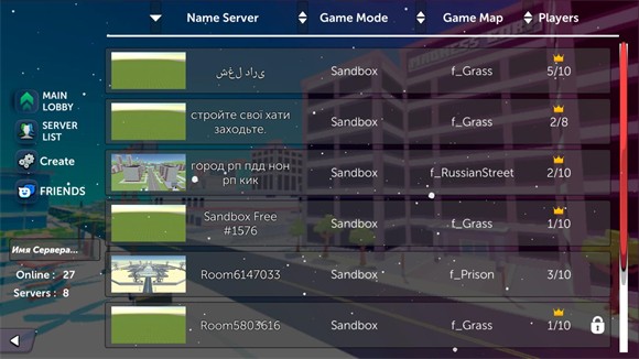 3、点击左侧的server list可以选择不同的房间进入游玩。