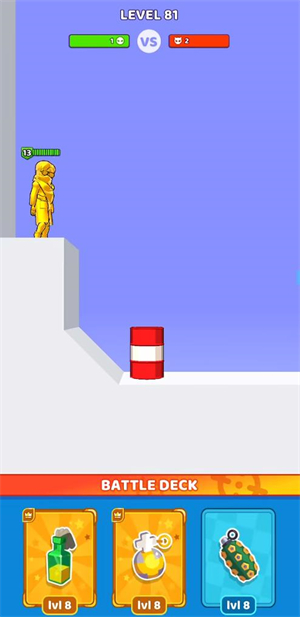 3、选好武器后,按住屏幕就能选定投掷方向,松开手指即可发射武器。