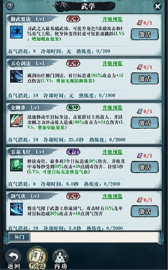 武学等级每提升5级,效果就会有显著增强。通过商城购买技能书,能够快速提升武学等级。在前期阶段,建议优先强化勤武要诀的吸血效果,以此来提高自身的生存能力。