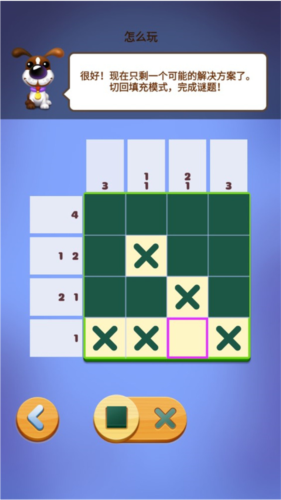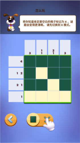 1、谜题通过填充格子完成,这里先切换到填充模式。