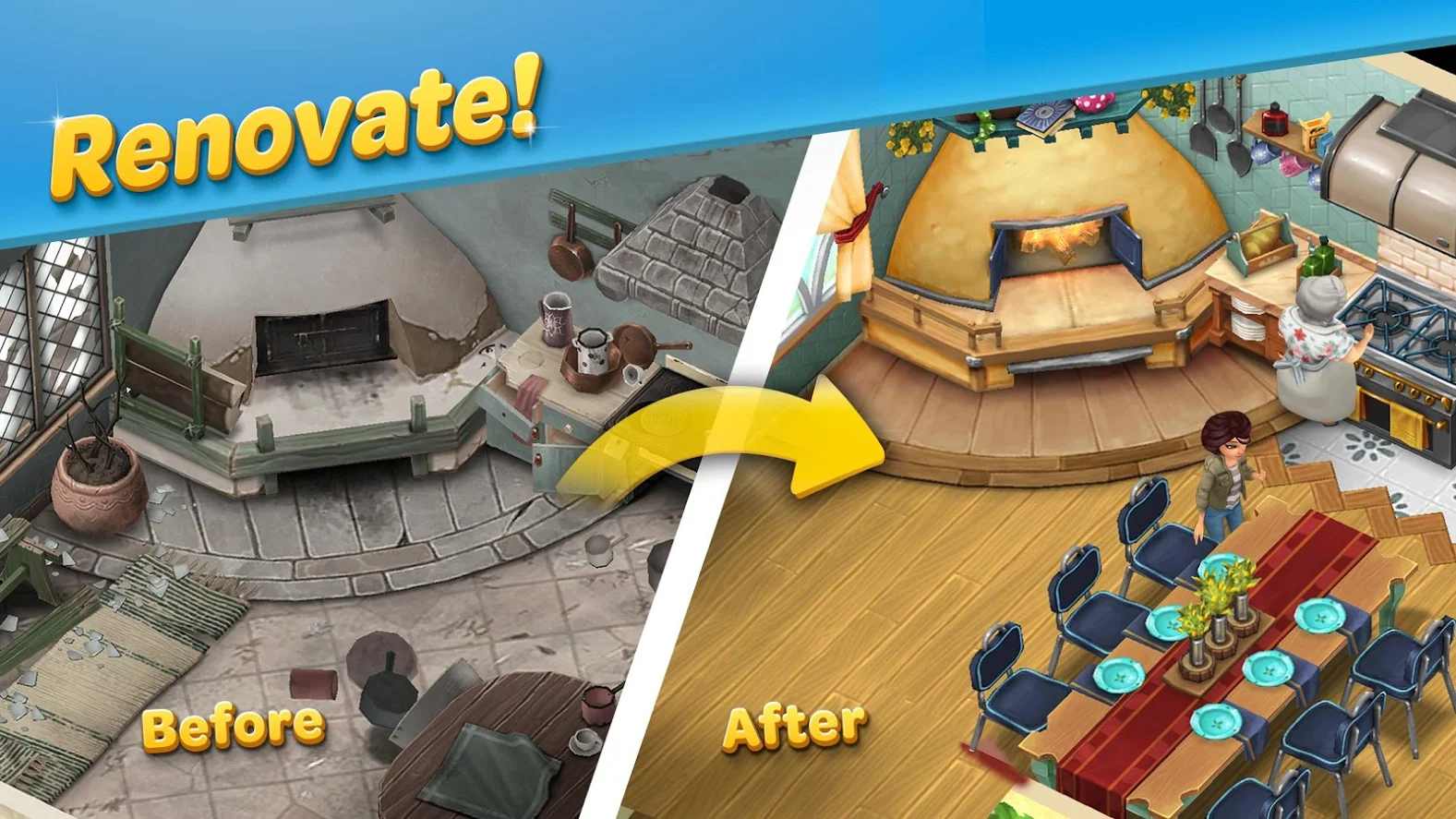 沉浸式游戏永无止境:你可以通过玩一系列免费又迷人的益智游戏、充满挑战的小游戏3以及其他休闲游戏来锻炼技能,同时翻新你的酒店。打造强力组合,为你的乡村酒店带来惊艳升级。