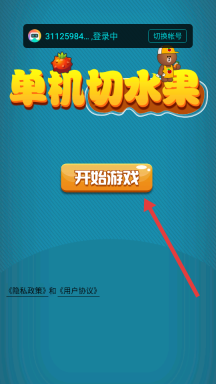 1、进入游戏后,在主界面点击开始关卡,等待游戏加载完成,屏幕中会出现水果即将掉落的提示,做好滑动切割的准备。