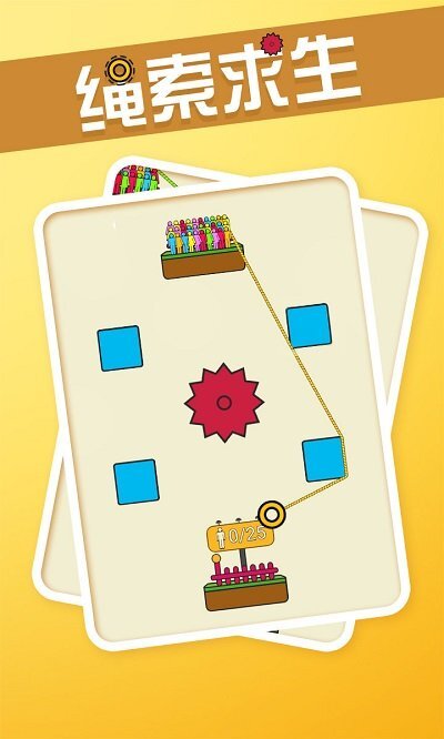 想办法让绳索到达地下安全的地方,救出小伙伴并保证不让他们受伤,即可成功通关