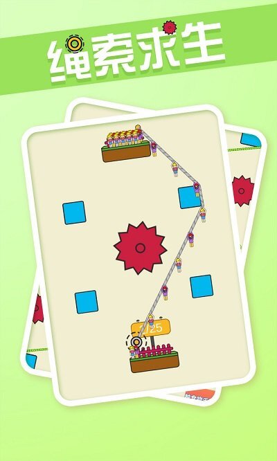 《绳索求生》是一款趣味十足的休闲益智游戏,整体采用2D火柴人风格设计。游戏过程中时而会让人觉得魔性搞笑,但可别因此分心——毕竟你还得通过那些精心设计的关卡,去拯救你的小伙伴呢。