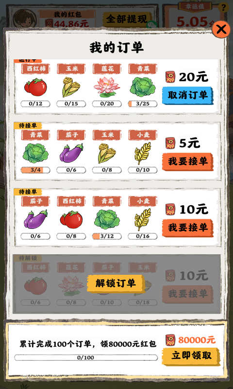 3、操作十分简单,只需点击几下,合成你农场里的农作物,就能完成游戏流程。