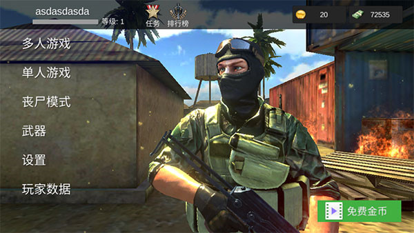 多人游戏玩法:在多人模式中,玩家将随机加入三角洲部队、雇佣军、海豹突击队、陆军、特警、恐怖分子这六大阵营之一,使用40余种现代武器,与其他玩家一同畅享紧张刺激、畅快无比的战斗体验。