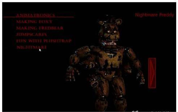 玩家将化身为披萨店的夜间巡逻员Mike。为吸引顾客,店内摆放了许多玩具熊,但这些看似可爱的玩偶实则是被孩童灵魂附身的机器人。每个玩具熊都有专属的移动模式,且会依据玩家的操作做出不同反应——若过于频繁地切换电视监控的开关或开启光线,它们会变得愈发疯狂且极具攻击性。玩家需要在这样的环境中与机器玩偶斗智斗勇,坚持度过五个夜晚,避免被它们发现并袭击。