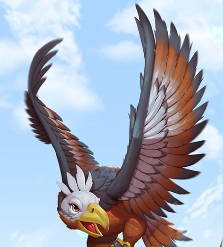 阿根廷巨鹰是人类已知史上体型最大的鸟类,站立时身高超2米,双翼展开可达5.8到7米,体重约70公斤,能捕捉15公斤重的猎物。在游戏里,它腾空而起的姿态霸气尽显,很容易让人生出敬畏之感;作为传说品质的飞龙,它不仅是生命星级最强的,更是防御类玩法中不可或缺的空战龙。