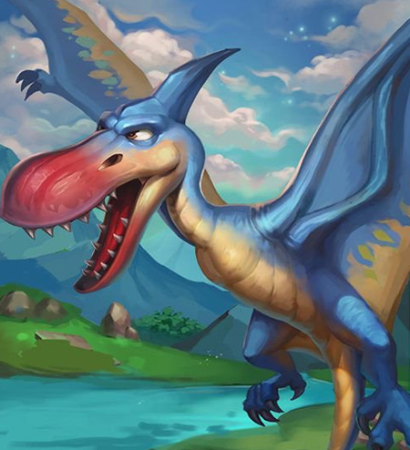 古神翼龙是一类生活在白垩纪巴西地区的翼龙。这类翼龙体型差异较大,部分物种的翼展可达6米,而且不同物种的冠饰在大小和形状上都有所不同。在游戏设定里,它有着五彩斑斓的外观,张牙舞爪的模样反而透着几分萌感,实力也相当强悍。当古神翼龙以小队形式出现时,属于不朽品质,它的秒伤能力在飞行恐龙里是顶尖的,堪称攻击类飞龙的最佳选择。