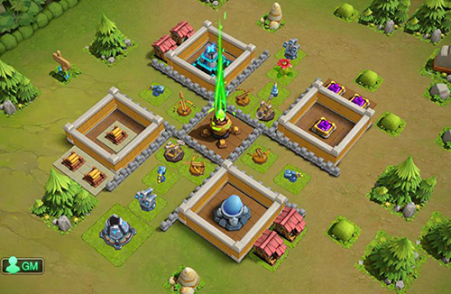 2、建议:尽可能的让攻击建筑紧凑,攻击范围相互交叉在一起,在敌方进入核心区时,会被相邻的防御建筑攻击。