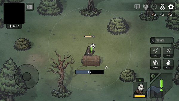 1、后打开进入到游戏内后,通过左边轮盘控制移动方向,右边控制射击、拾取等操作