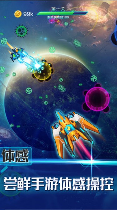 简单的触屏操控,通过移动射击小飞机,将全部的病毒消灭殆尽。