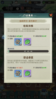 4、事务功能:事务是通过点击按钮即可自动触发执行的任务,不同职位对应的奖励有所区别,职位级别越高,能够获取的奖励就越丰厚,奖励包含贡献值、玉叶等。事务奖励每8小时可领取一次,建议大家留意时间,及时领取。