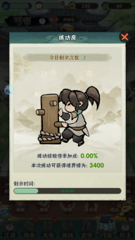 6、练功房:消耗门派贡献或玉叶进行修炼,可获取修为经验。每日修炼次数存在限制,人物顶部会显示今日剩余次数。