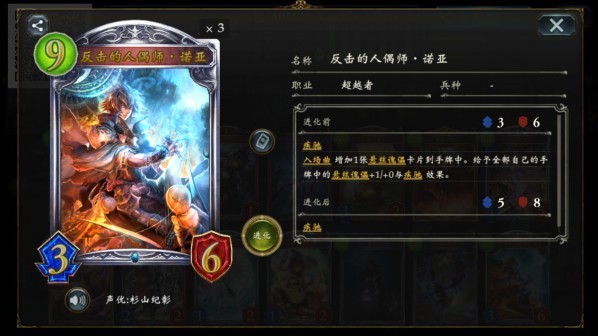 “悬丝傀儡(0/1/1)”体系则是在手牌中运作“悬丝傀儡(0/1/1)”,在后期利用“反击的人偶师·诺亚(9/3/6)”将手中的傀儡转化为伤害进行终结。