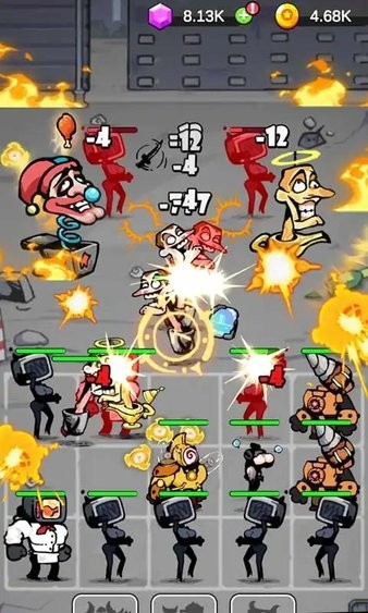 怪物勇士之战安卓版是一款勇士与怪物对战的游戏,其中会登场众多角色,像马桶人、监控人、电视人这些热门角色都包含在内。玩家需要通过合并勇士来实现升级,以此对抗不断出现的各类怪物。