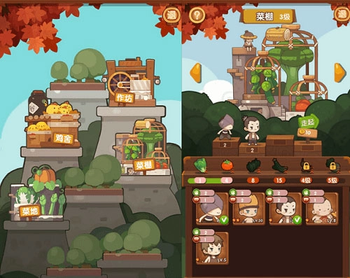 经营一家饭店,食材是必不可少的。玩家需要去探索获取食材,这也是主线任务的一部分。在专属的“后花园”区域,设有菜棚、鸡舍、作坊等设施,玩家可以派遣厨师前往这些地方探索获取白菜、西红柿、鸡蛋等菜品原料,之后就能用收获的食材为到店的客人烹饪菜肴了。