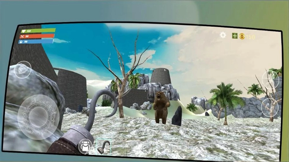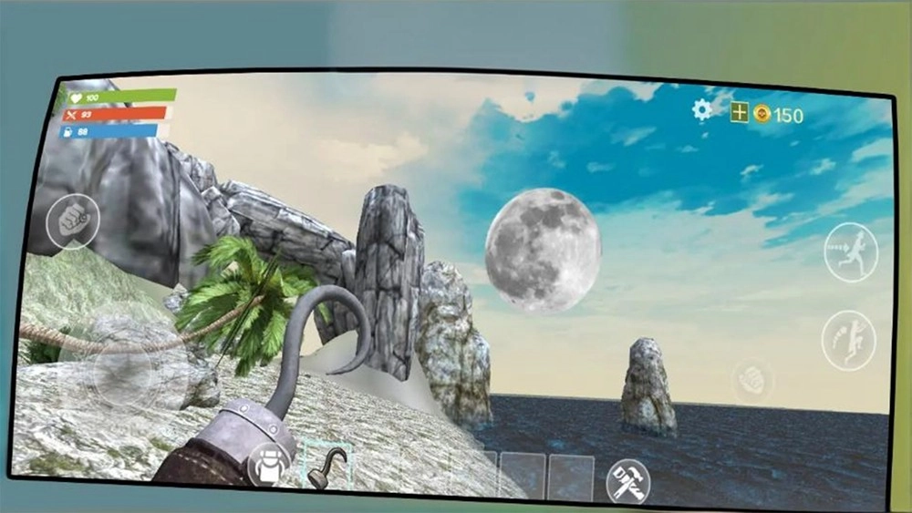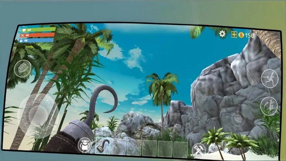 1、点击开始游戏进入荒岛场景,借助初始工具搭建基础生存基地,为后续的求生行动提供安全的落脚点。