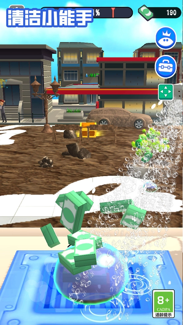 3. 完成清洁任务后,能够解锁新工具与新区域,进而逐步让城市恢复原本的面貌。