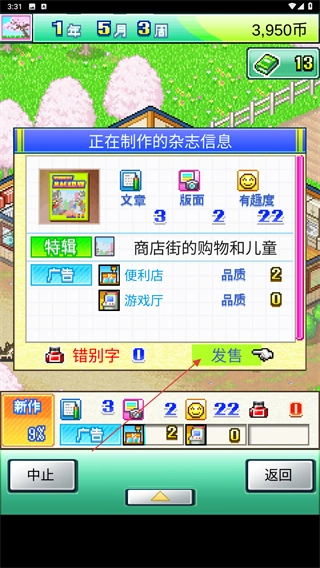 3、点击下方的新作进度,可以查看到目前正在制作的杂志信息,点击发售可以进行售卖。