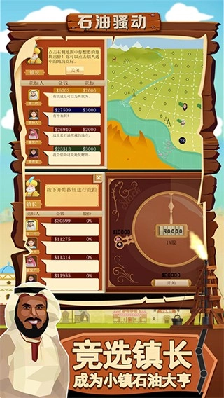 采用卡通风格的中东美术设计,场景里融入了沙漠、城邦等地域元素,角色造型也充满了中东地区的特色气质,再搭配上石油勘探、钻井开采的核心玩法,很好地还原出中东石油产业的经营氛围,题材和画风之间的适配度非常高。