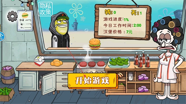 1、打开蟹堡王传奇游戏,点击主页上的开始游戏按钮进入新的一天营业。