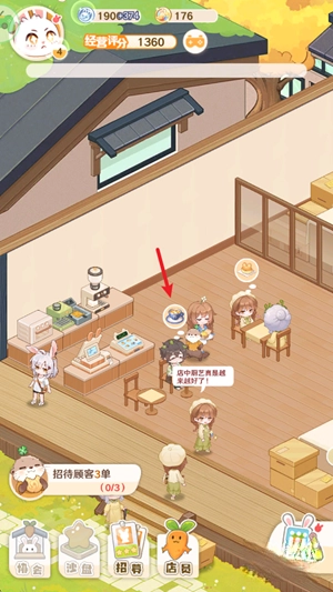 1、开场剧情结束后,当顾客到达时,点击其头顶的标识就能完成点单。