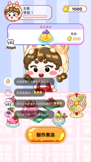 魔法甜心铺是一款结合甜品制作与网红直播元素的休闲模拟经营游戏。游戏核心玩法围绕果冻制作展开:观众会提出果冻定制需求,玩家需据此动手制作,过程中可自由搭配口味与造型——不仅有草莓、柠檬这类常规口味,还有辣味等数十种新奇基础口味可供选择,同时搭配上百种食材和装饰物。完成制作后,玩家能获得观众打赏,进而解锁新菜单或购置更自动化的工具。