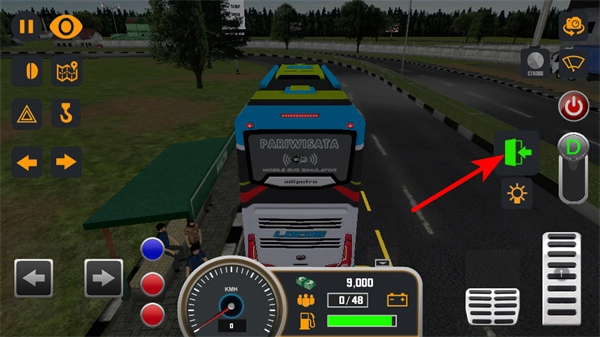 1、进入游戏后点击右侧的车门按键,可开启巴士车门,触发乘客上下车的交互流程。