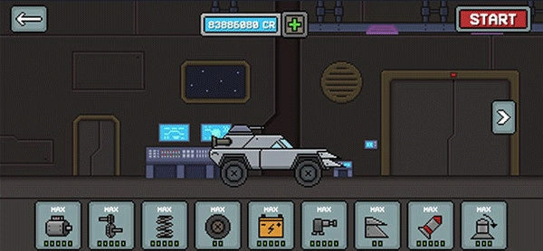 2、在充满艰辛的场景里,依然可以自由升级车辆的引擎、变速箱、轮胎、电池、武器等各类部件;
